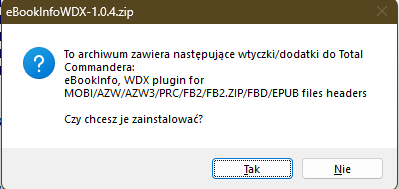 Po ściągnięciu pliku ZIP z wtyczką, wchodzimy w ten plik w programie Total Commander i program sam proponuje jej instalację.
