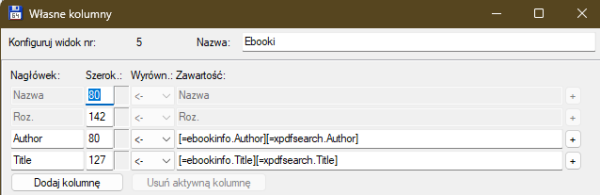 Tytuł i autor książki jako kolumny w Total Commander