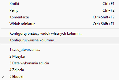 Zapisujemy w ten sposób nasze ustawienia i możemy je potem wybierać po kliknięciu prawym klawiszem na nagłówku kolumny.
