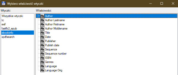 Pierwszym krokiem będzie instalacja wtyczki eBookInfo WDX, którą ściągniemy ze strony TotalCmd.NET, jest też wątek na oficjalnym forum. Wtyczka da nam dostęp do szczegółowych danych e-booków.