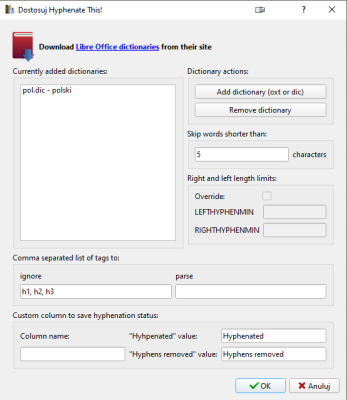 Wtyczka Hyphenate This! korzysta z dostępnego publicznie pliku słownika hyph_pl_PL.dic, który ma wiele lat i stosowany jest choćby w programie Libre Office. Nawet ustawienia wtyczki odsyłają do Libre Office.
