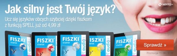 Fiszki językowe -50% w Nexto z wydawnictwa Cztery Głowy – to wprawdzie audiobooki, ale pomysł bardzo ciekawy. Promocja do 2 lipca – wszystkie kosztują od 4,99 zł do 9,99 zł – choć zarejestrowani mają jeszcze 5% obniżki.