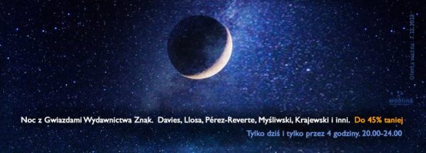 Książki wydawnictwa Znak do 45% taniej w Woblinku – tylko dzisiaj i tylko między godziną 20 i 24. Wróćcie tu wieczorem. :-)