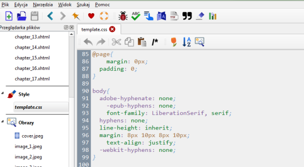 - Importowanie plików HTML, obrazów, zewnętrznych czcionek oraz innych plików EPUB.